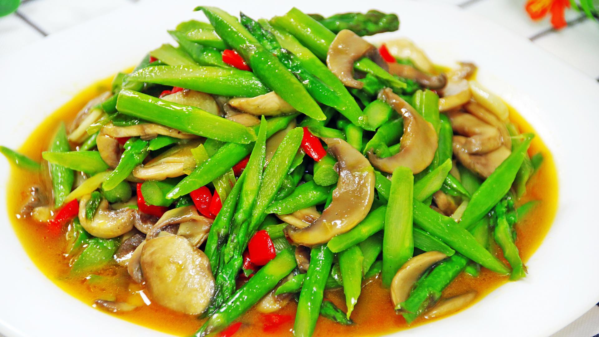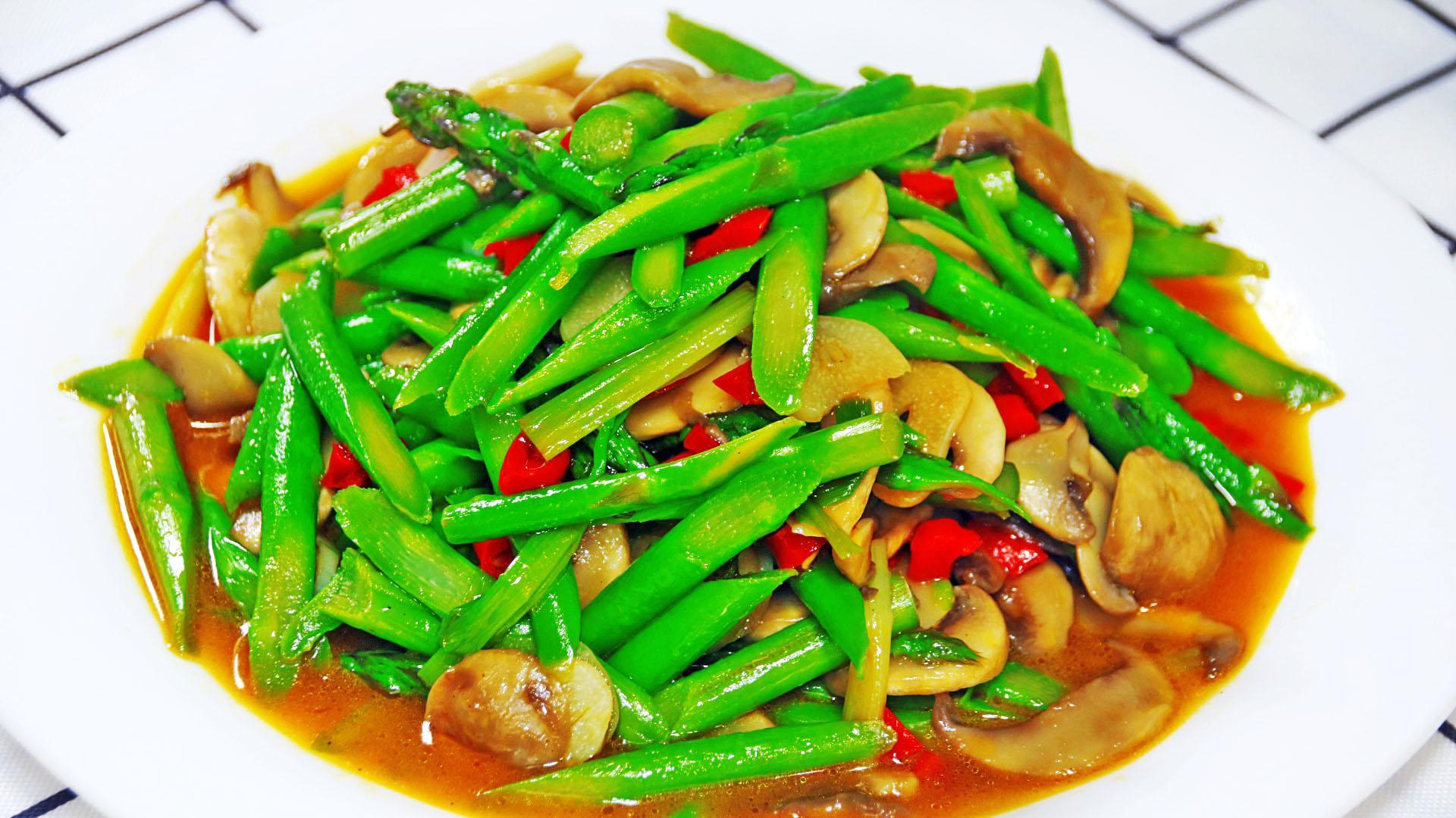 這道蘆筍炒口菇是我特別愛喫的一道菜,蘆筍營養價值高,搭配點口蘑一起炒一炒,味道超級棒。蘆筍相比於其它的食材價格較高, 但還是有很多人愛喫,在家常菜、西餐、減肥餐中都能看到它的身影。