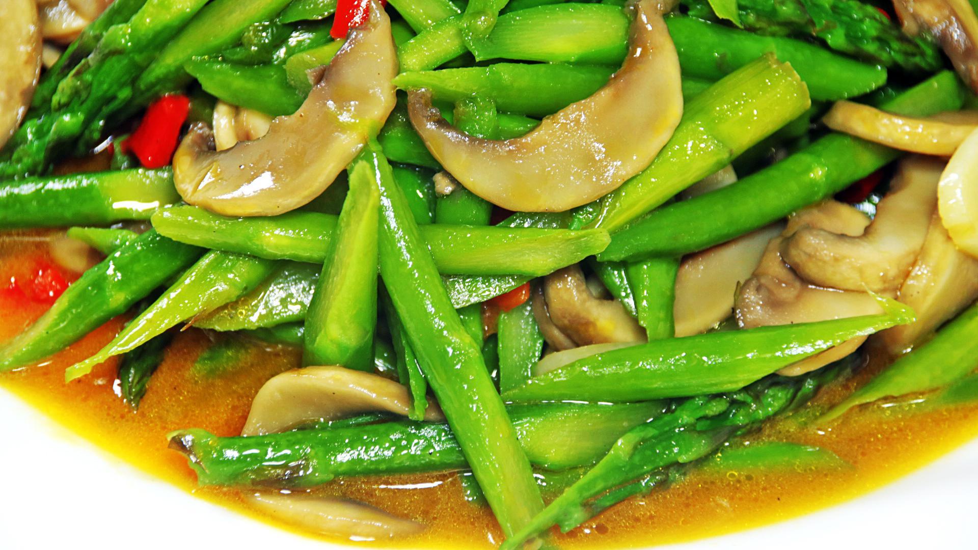 口蘑則富含蛋白質、膳食纖維和各種礦物質,具有增強免疫力的功效。蘆筍和口菇兩樣食材搭配在一起,不僅味道美味,而且營養豐富,是一道非常健康的菜餚。