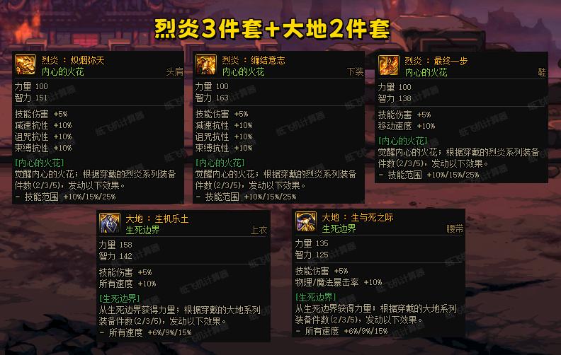 實際上,“烈炎5”“大地5”或者“烈炎3+大地2”,傷害都是一樣的,只是各自提供的功能性不同而已,大家按需選擇即可。