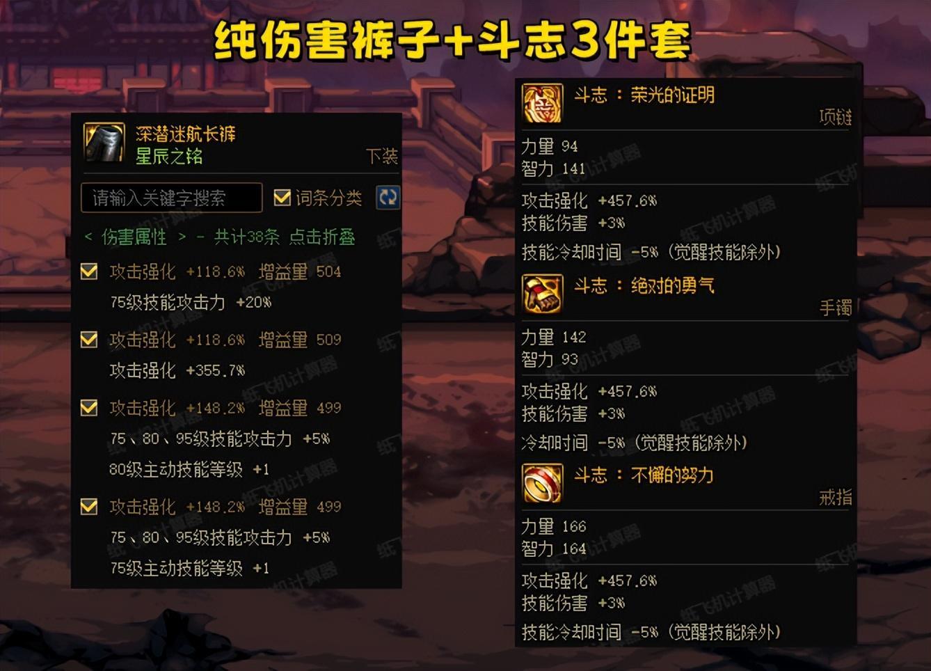 (2)首飾貼膜選擇了“鬥志3件套”,同時“深潛褲子”選擇了4個純傷害詞條(沒有選lv75冷卻-20%)!