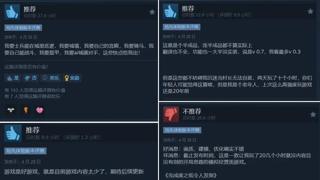 作爲一款“搶先體驗”的遊戲,也有不少玩家指出遊戲雖然底子不錯,但完成度着實不高,期望製作組在後續能及時更新。