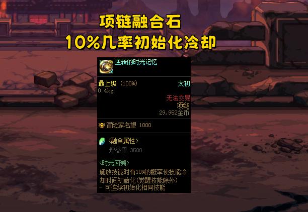 【5】“逆轉的時光記憶”,太初融合石項鍊,釋放技能時有10%概率使該技能冷卻時間初始化(覺醒除外)!