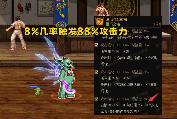 【2】“海俠戒指”,釋放lv50/85/100技能時,有8%幾率增加88%技能攻擊力!