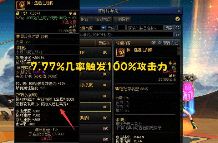 【1】“遙遠之刻痕”,釋放技能時有7.77%幾率增加100%技能攻擊力!