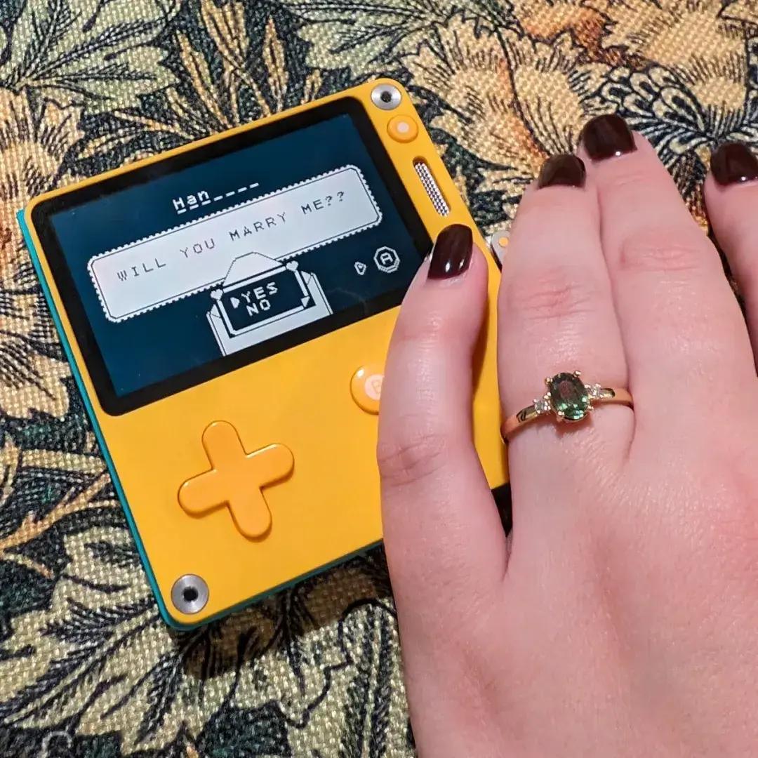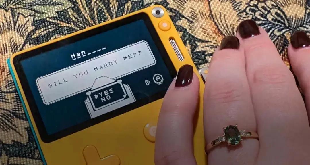 她更沒預想過在通關遊戲的那一刻,“你願意嫁給我嗎”的字樣會出現在屏幕上,結婚隨即進行曲響起,她抬頭見到男友在她面前單膝跪地,並掏出一枚戒指。