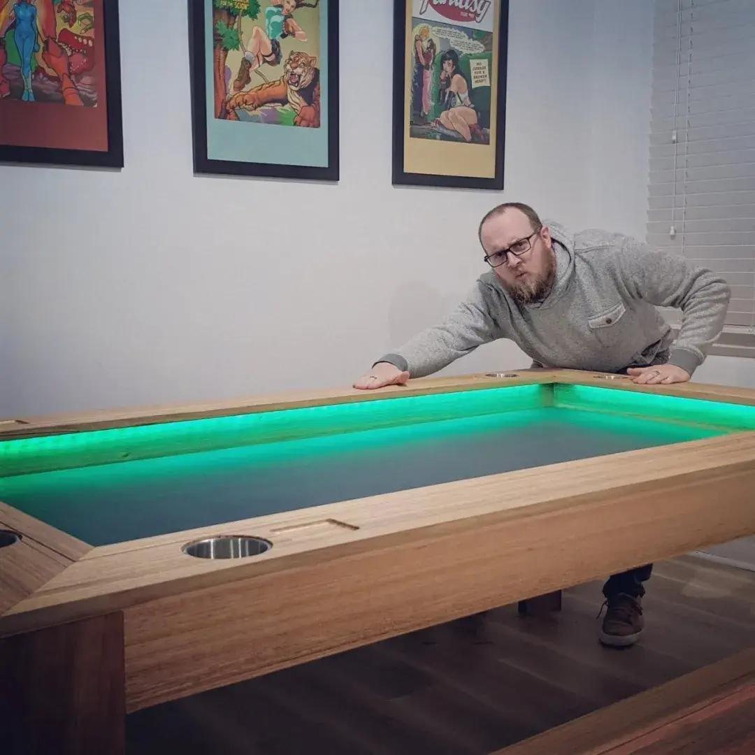 從外表看上去,艾倫是個五大三粗的糙漢,從職業性質上來說,他也是個自帶宅屬性的遊戲開發者。但艾倫在社交媒體上,向來表現得看重生活情趣和儀式感。每年聖誕節,他都會和朋友拍一張相當搞怪的聖誕賀圖;購入“桌遊神桌”後,他也會連發好幾條開箱推文向網友們嘚瑟。
