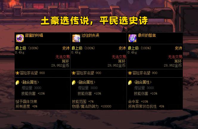 相當於土豪如果追求極限傷害,那麼就選傳說融合石,而平民玩家直接選擇史詩融合石就好了。