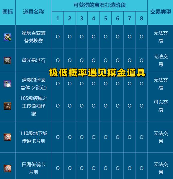 【1】“摸金道具”,通關1~8階段有幾率遇見霧光寶藏(小百變隨機券)、鎖2晶體、傳說袖珍罐、傳說卡冊等;