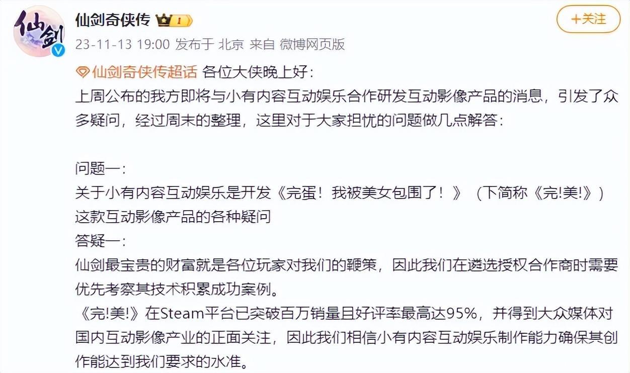 這顯然不是老粉願意看到的結果——作爲中國本土最有影響力的遊戲IP之一,仙劍系列已經存續了近三十年,沒有任何版權方會希望它此時此刻“壽終正寢”,但是仙劍衍生作品的形式和質量,卻又讓它僅剩的情懷岌岌可危。