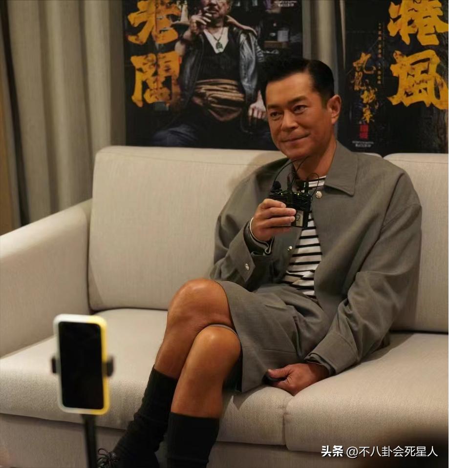 53歲的古天樂最近也被發現瘦了不少,這種坐在椅子上的照片,翹着二郎腿的他雙腿纖細如“筷子腿”,整個身板看起來輕薄了很多。