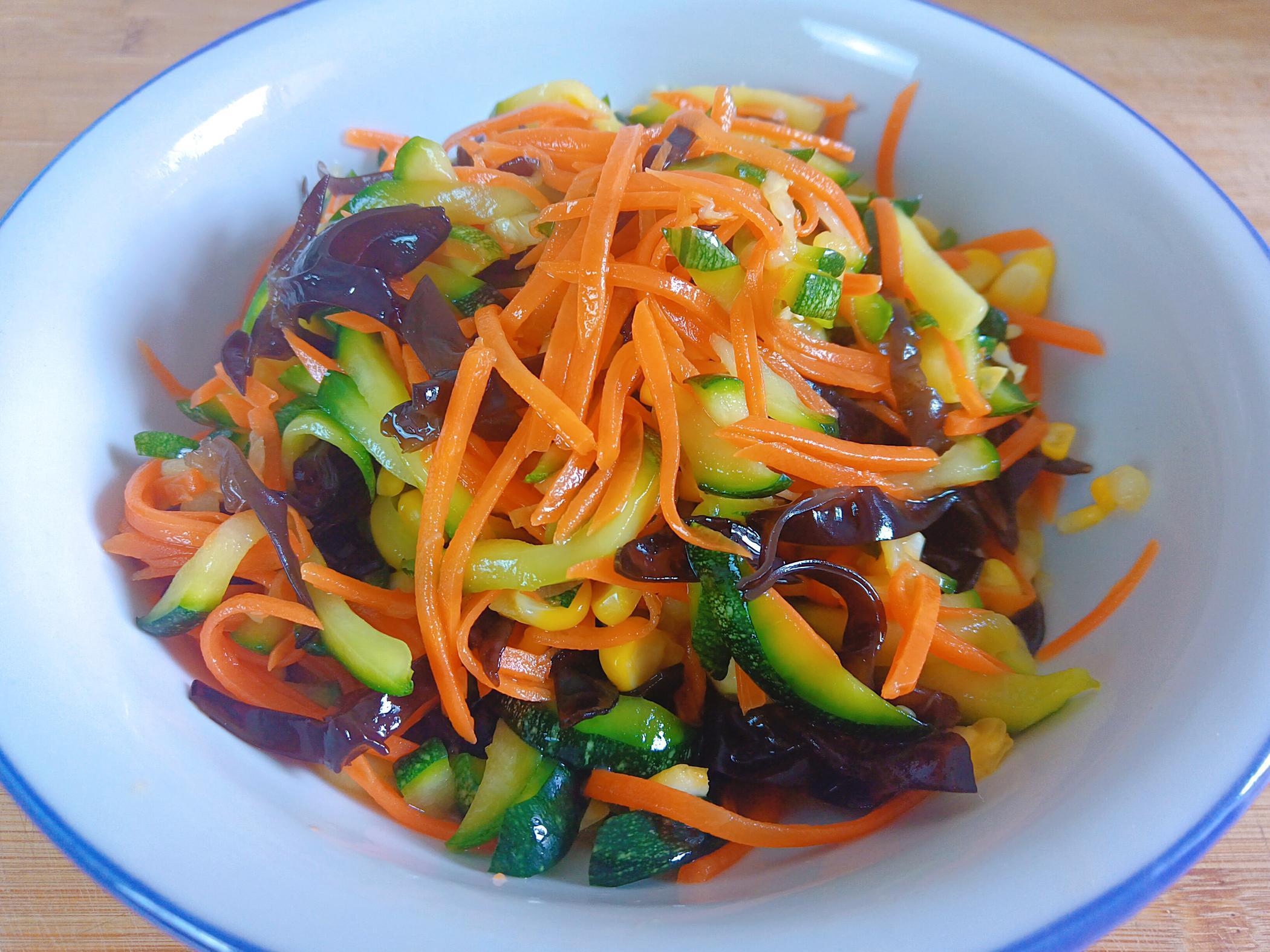 4、這時候西葫蘆絲也差不多醃製好了,醃出了很好的水分,我們在用清水洗掉多餘的鹽分,這個時候的西葫蘆絲很有韌性,變軟了也變少了;