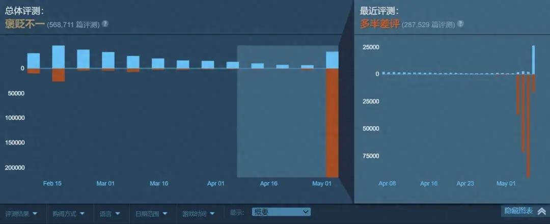 在這之前,Steam上還沒有哪個遊戲能以這樣大的基數、在這麼短的時間內“反轉”自己的評價。