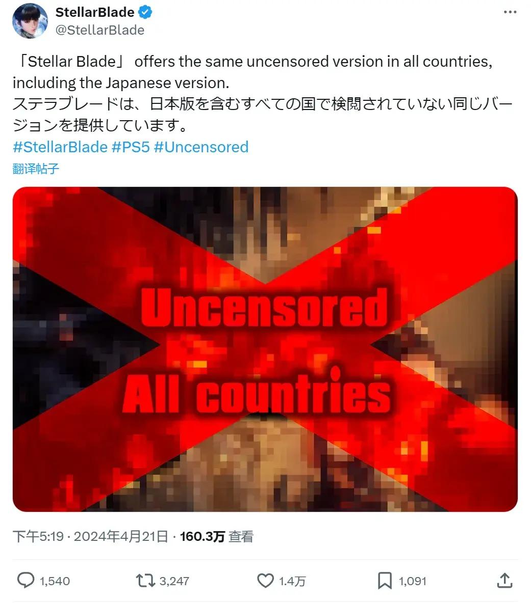 《劍星》作爲PS5獨佔的第二方遊戲,在前期宣傳中不僅通過各種物料反覆強調“我們這兒有一款女主角相當性感的遊戲”,在社交平臺上也營造出了一種“我們正是爲打破政治正確而來”的氛圍,比如在官推上強調:《劍星》在所有國家推出的都是未刪減版。