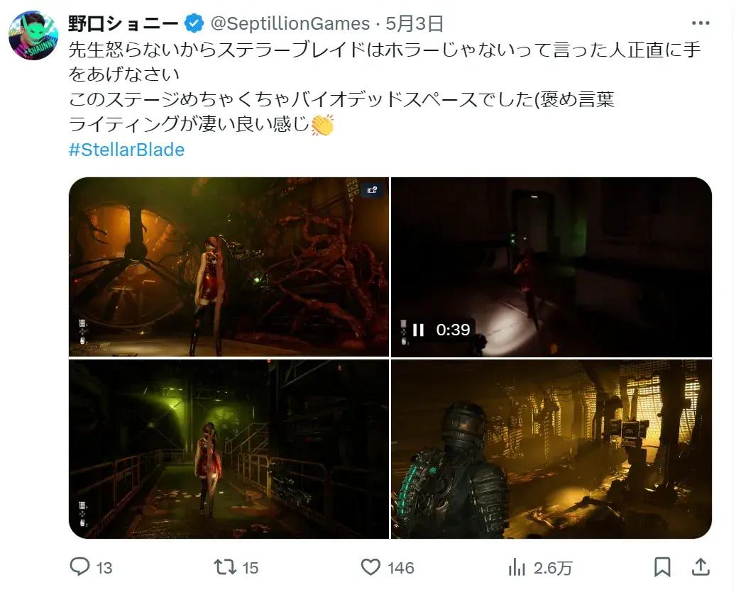還有EA日本分社的社長野口ショーン,因爲自家遊戲《死亡空間》明明在血腥暴力程度和《劍星》不相上下,此前卻沒能在當地過審,而在個人推特上抱怨了幾句,結果也招來一些諸如“勸你不要多管閒事”“因爲你們自己沒去抗爭”的留言批評,嚇得他趕緊“疊甲”說自己很支持也很喜歡《劍星》,只是對不透明的審查制度表達不滿。