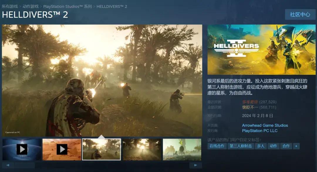 不到3天時間,《地獄潛兵2》在Steam上收到了超過30萬條差評,且仍在不斷增長,遊戲的近期評價變成了“差評如潮”,整體評價也從“特別好評”掉落到“褒貶不一”。