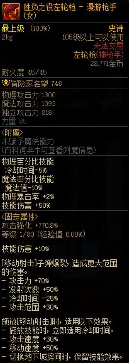 本次CP武器改版的最大贏家之一,簡簡單單增加了10%技攻,而且特化40還減少了冷卻時間,可以考慮走特化流派。
