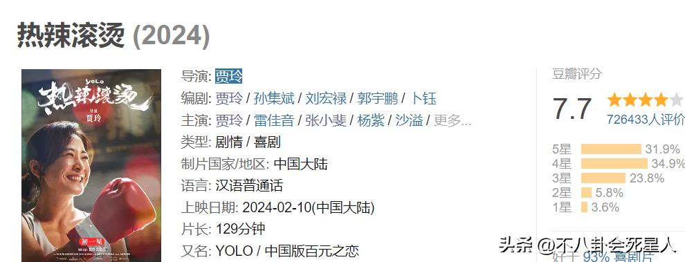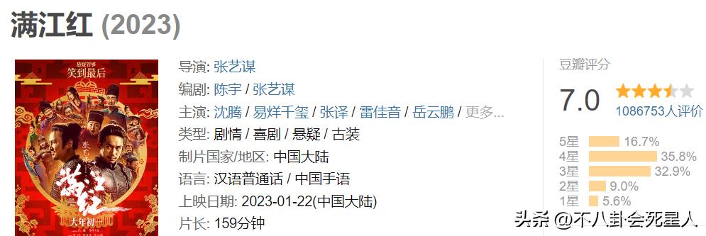 比如收穫了45億票房的《滿江紅》和近35億票房的《熱辣滾燙》,口碑也是褒貶不一,在某平臺的評分也只有7分和7.7分。