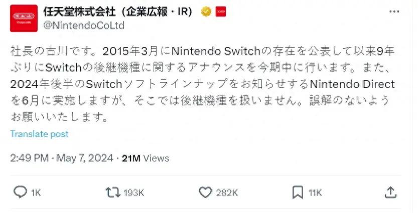在這之前,任天堂還將在今年6月舉辦一次直面會,公佈2024年的諸多遊戲,且特別強調了該直面會上不會提及未來新主機。