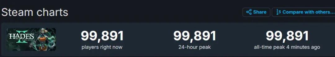 《哈迪斯2(Hades II)》於昨天凌晨在Steam上開啓了搶先體驗,國區售價108元人民幣。儘管遊戲上線得讓人有些猝不及防,但在線人數還是很快達到了9萬。
