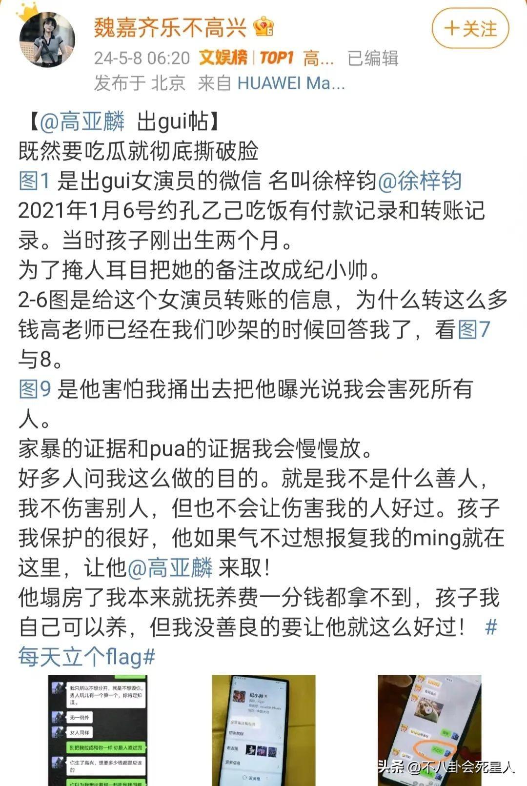 5月8日凌晨,高亞麟被曝家暴出軌,演員魏嘉在網上曬出大量聊天記錄,爆料高亞麟家暴,並出軌女演員徐梓鈞。
