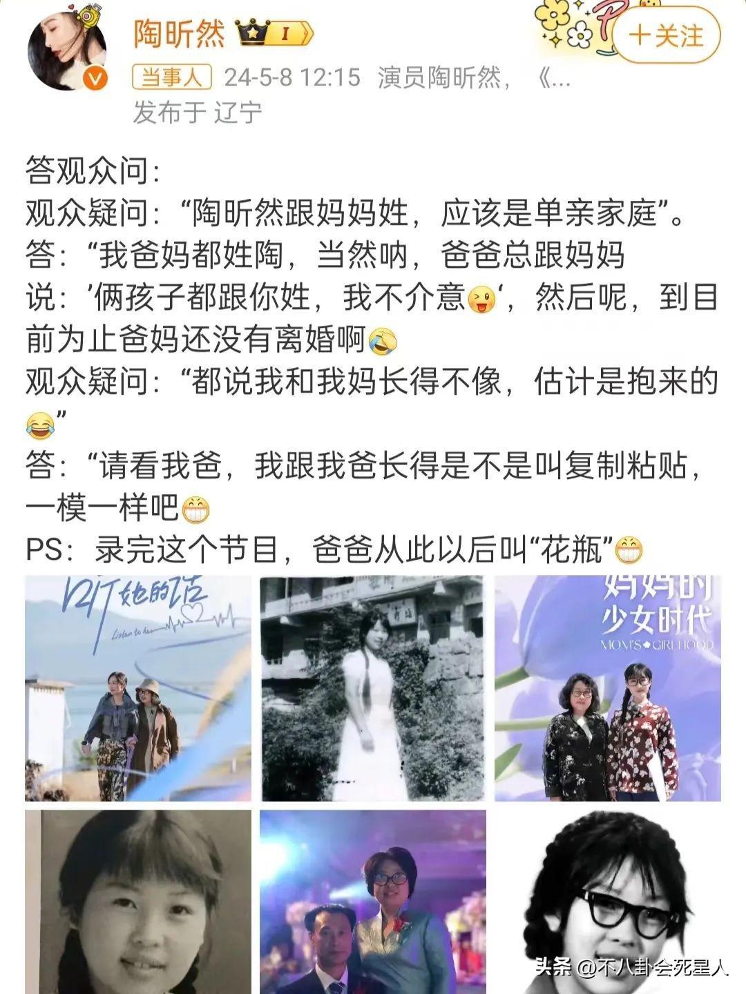 《甄嬛傳》安陵容的扮演者陶昕然,參加了一個《是女兒是媽媽》的綜藝,因爲她和她媽媽都姓陶,於是有網友以爲她是單親家庭,父母都離婚了,所以纔跟媽媽姓。