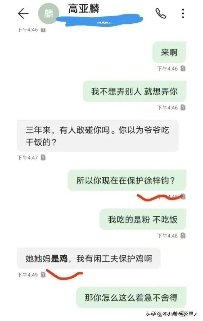 從聊天記錄來看,高亞麟三觀炸裂,那句“男人玩兒有一個算一個”,暴露了渣男屬性。
