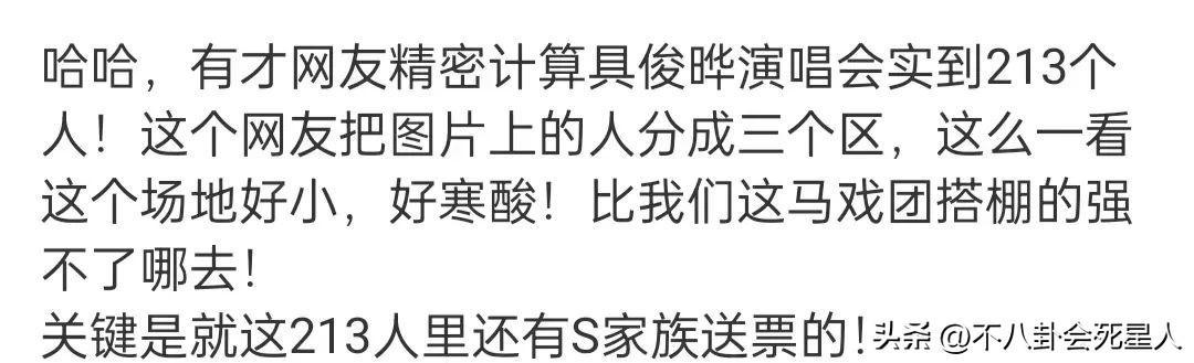 然而,有眼尖的網友仔細數了現場人數,發現只有213人,並不是報道的900多人,具俊曄“打腫臉充胖子”被嘲笑了。