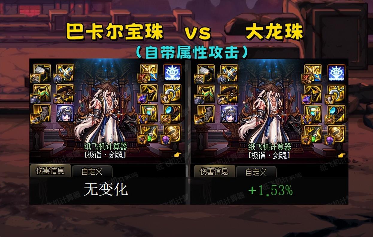 【1】當職業自帶“屬性攻擊”時,“大龍珠”比“巴卡爾寶珠”高了約1.5%左右;