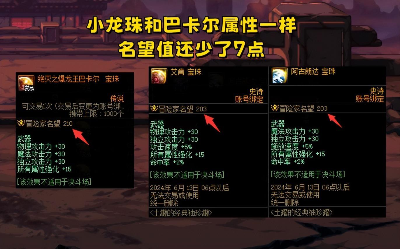 因爲“小龍珠”不僅比不上“大龍珠”,甚至比“巴卡爾武器寶珠”還少了7點名望值!