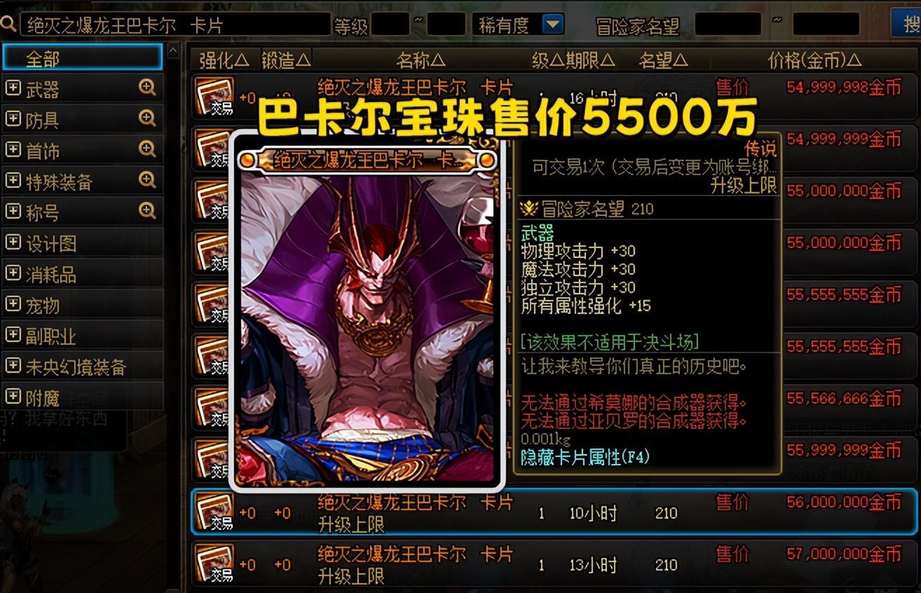 目前“巴卡爾武器寶珠”售價5500萬左右,如果“小龍珠”超出這個價格,那麼絕對不建議入手,反之如果價格低當然可以考慮。