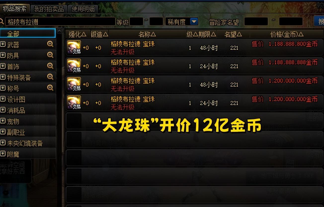 好消息是,至少可以從拍賣行入手大龍珠了,要知道以往幾次活動中,大龍珠只能從交易網站上入手,拍賣行的12億金幣根本裝不下大龍珠的身份;
