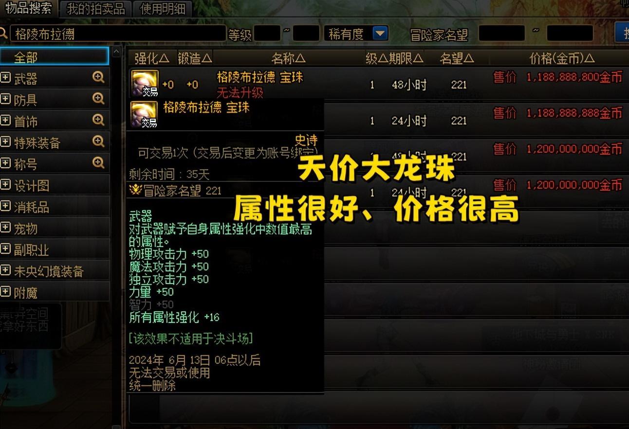 DNF:拍賣行第一批龍珠出爐!開價12億金幣,值得入手嗎?