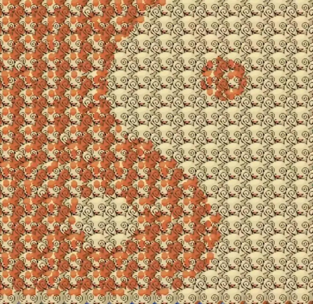據JakobHarych在Github上的項目介紹,他在這段《Bad Apple!!》裏使用了一個簡單的遺傳算法去尋找與目標圖像最匹配的個性值。簡單來說,就是代碼不用看遍所有晃晃斑的花紋找出“誰最像”,通過多次橫向對比“誰更像”,就能找到最適合畫面的那一隻,大大增加了效率。