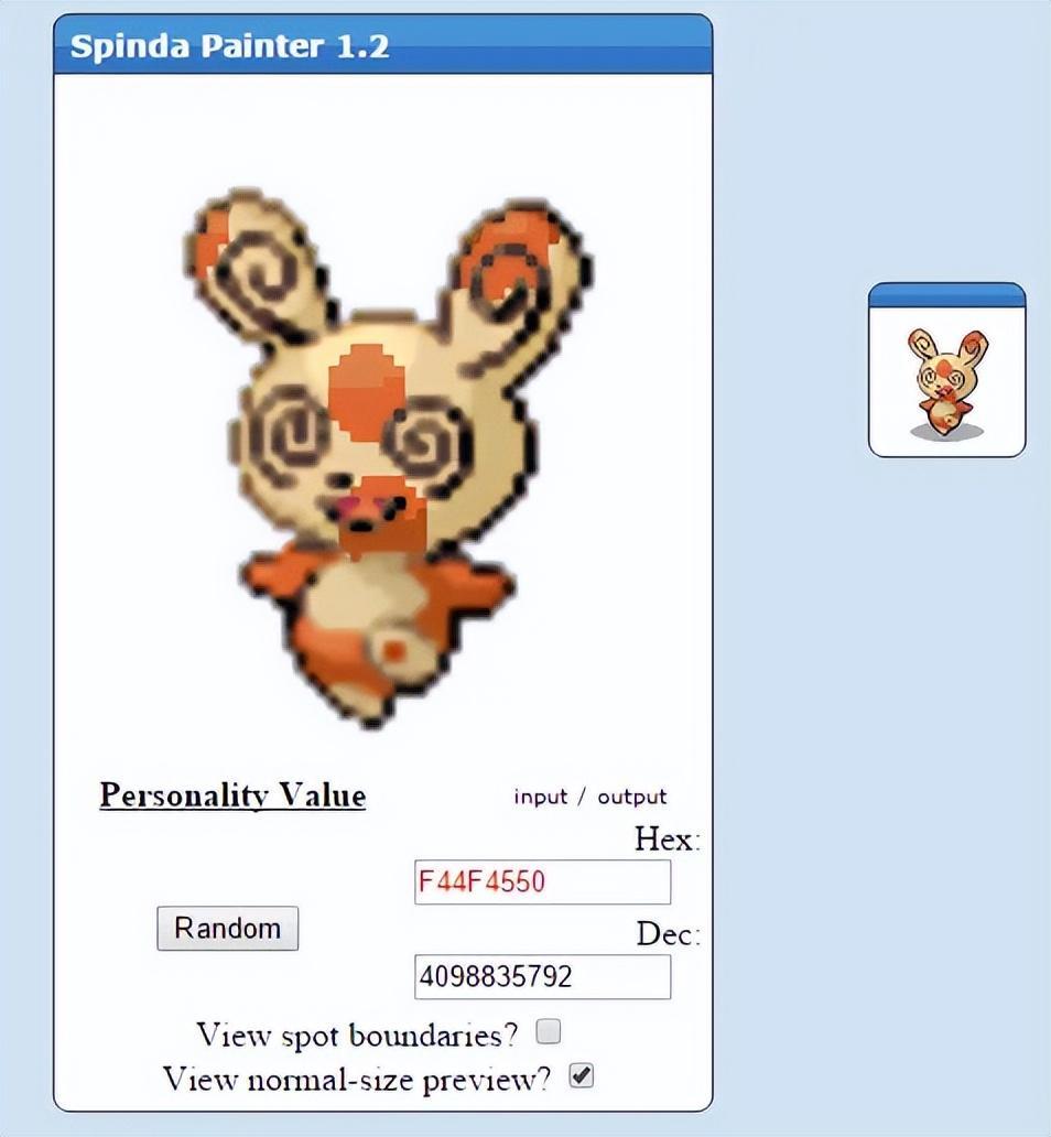 在衆多“寶學家”的研究下,很久之前人們就研究清楚了晃晃斑的花紋之謎:它的斑點位置同樣是由寶可夢的隱藏數據性格值控制,只要能用PKHeX等工具控制它的性格值,就能任意捏出想要的花紋。在Github上也早已誕生了專門用來畫出心儀晃晃斑的“晃晃斑繪製器”。