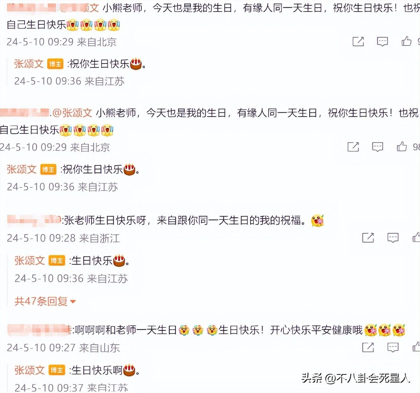 目前爲止,還沒有看到娛樂圈有知名明星爲張頌文公開祝福,連在張頌文生日的動態下也沒有看到明星的祝福,全部都是粉絲的祝福。