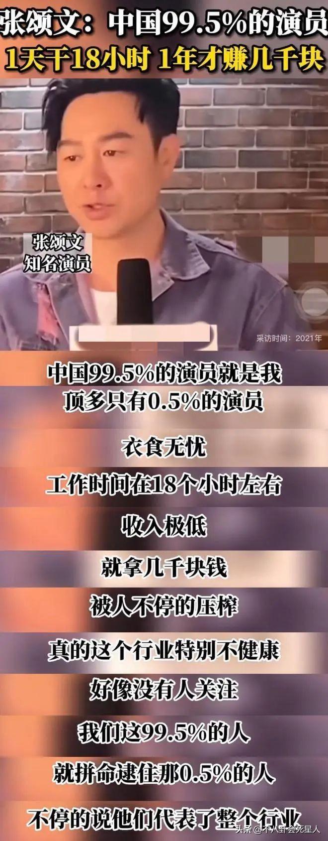 他形容娛樂圈有百分之九十九點五的演員過得並不風光,一天工作18個小時,每個月收入幾千元,只有百分之五的演員衣食無憂,而他在《狂飆》之前就是屬於那百分之九十九點五的演員。