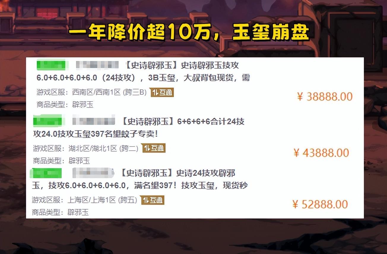雖然說降價超10萬,雖然說幾萬就能入手一塊玉璽,但對於絕大多數玩家包括我自己,拍賣行兩三億的辟邪玉都要猶豫半天,更別說天價玉璽了。