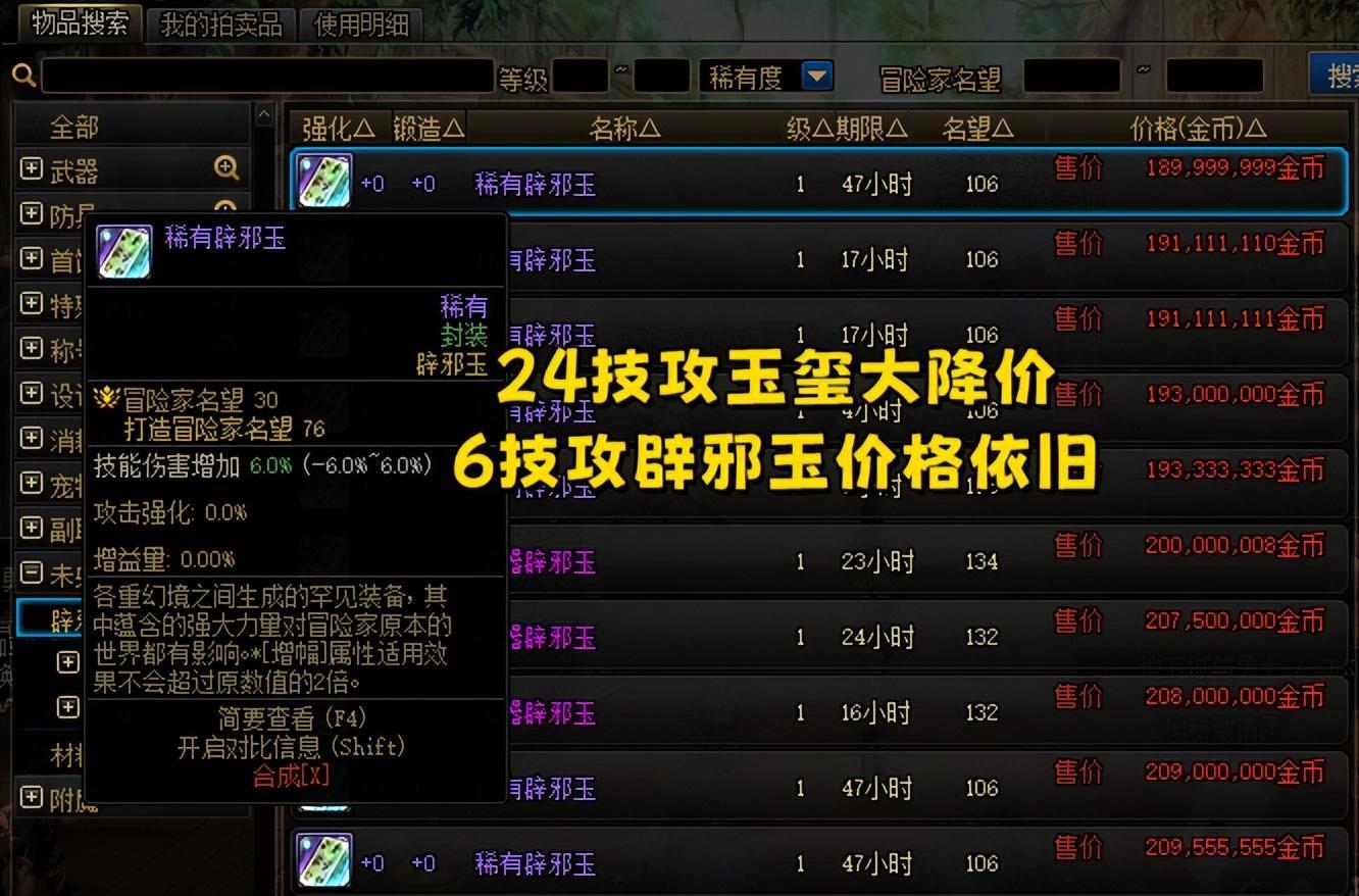 DNF:地下城最強貶值道具,一年降價10萬,辟邪玉怎麼涼了?