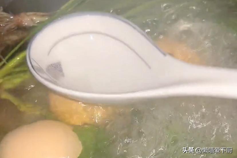 3、大火煮開,轉小火煮10分鐘,將雞蛋撈出來,用勺子將蛋殼輕輕敲碎;