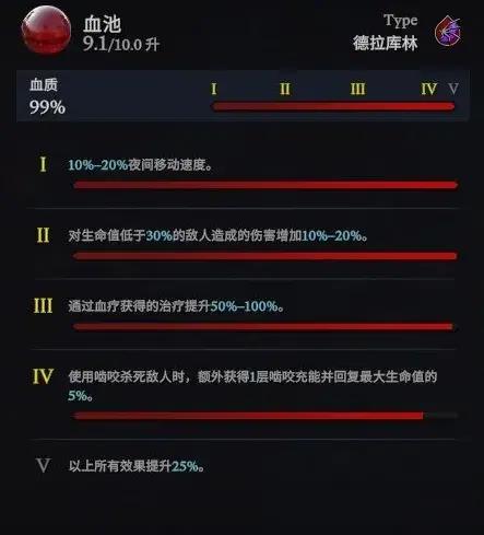 在血型的基礎上還有名爲“血液質量”的數值,血液質量越接近100%,血液能提供的增益數值越高。一旦玩家吸食新的目標,那原有的血型和血質就會被替換掉。