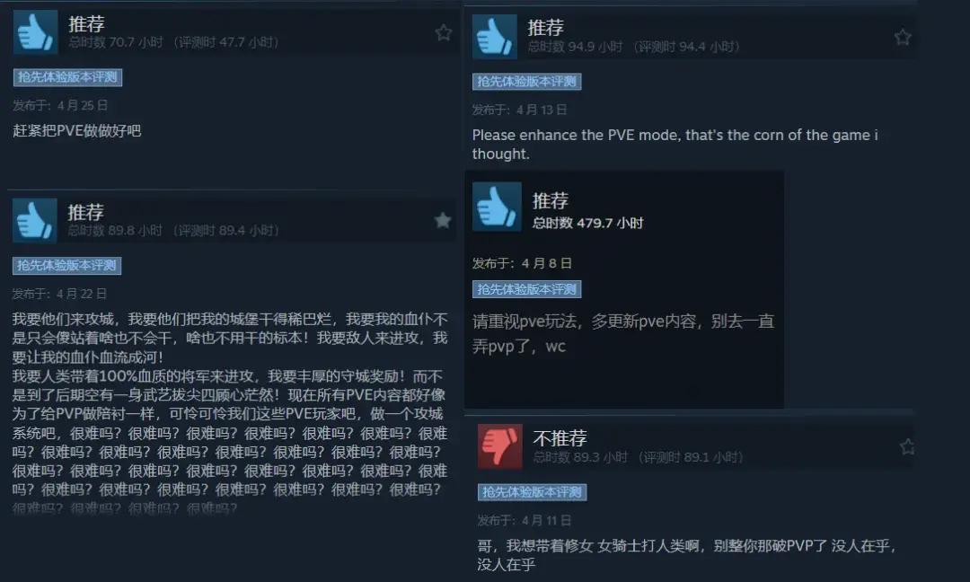 但不是所有人都喫“攻沙”這一套,在Steam的評價裏,希望製作組增加更多PVE玩法的呼聲也一直沒斷過。