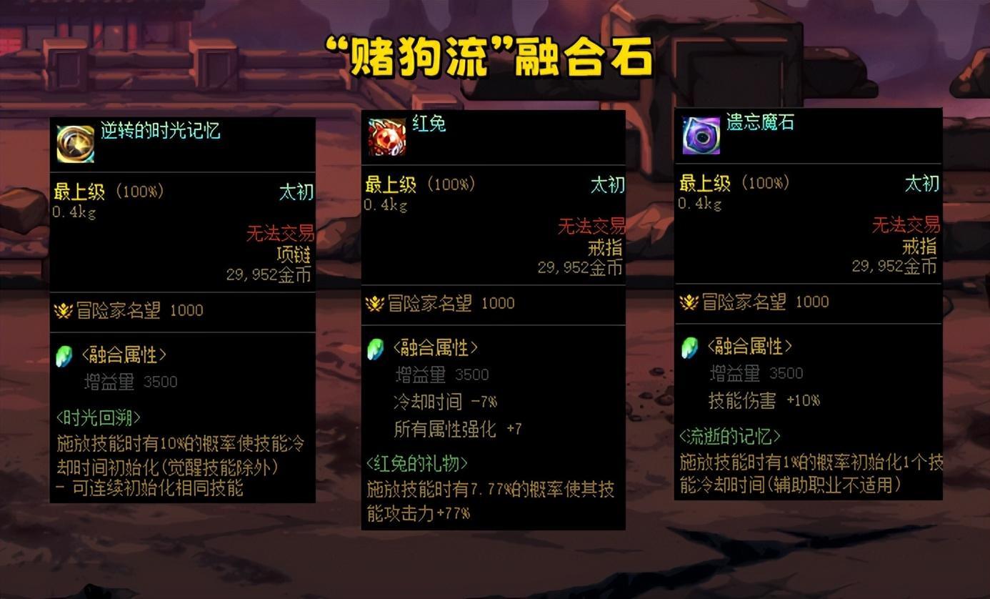 如果打造比較差,則可以選擇“賭狗冷卻”和“11.5技攻”,這種融合石的屬性,就特別像當初85/90版本的裝備了,屬於是炒冷飯級別。