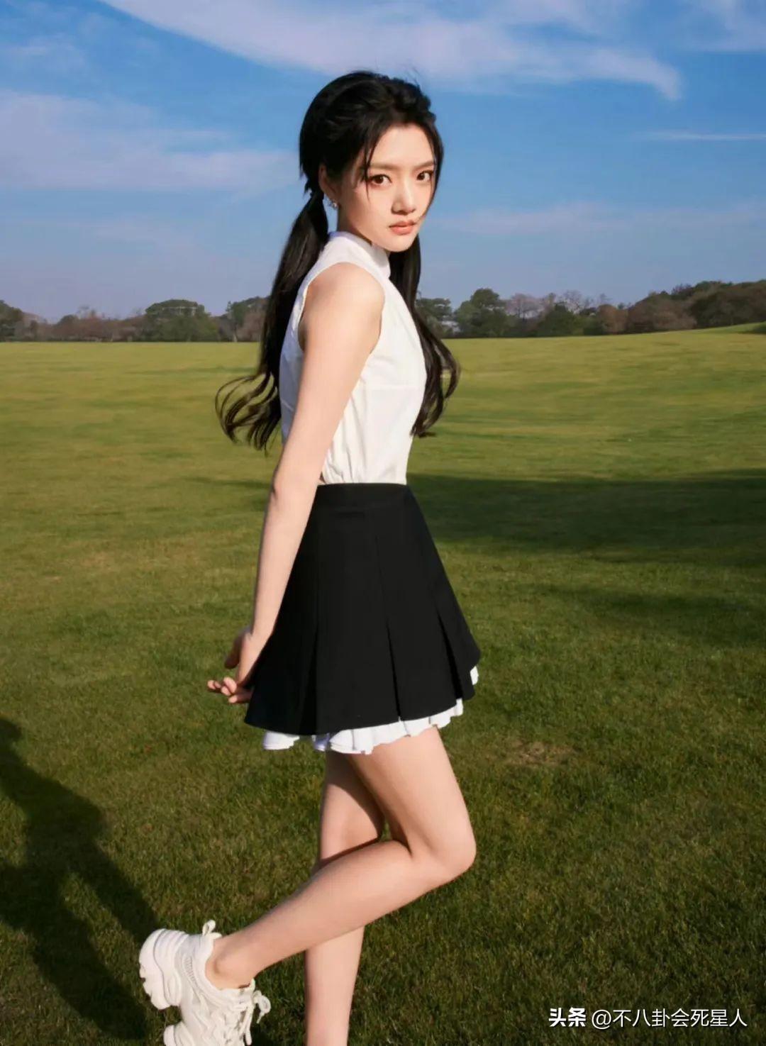 趙露思的精修與生圖同樣差距不小,先說精修,臉小腿長比例優越,看着甜美又靈動。