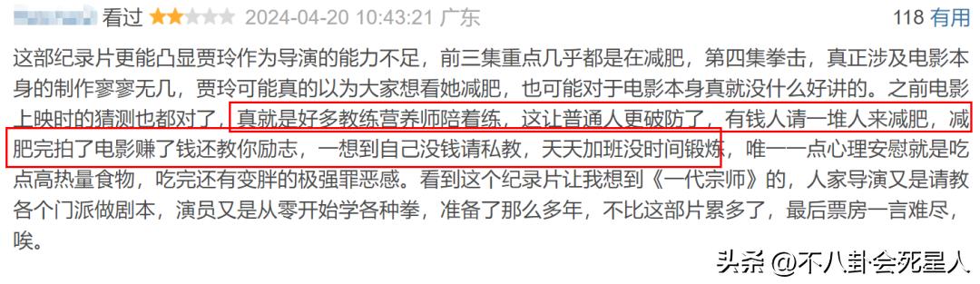 賈玲的《熱辣滾燙》放在電影圈來說無疑是成功的,但其實從電影到紀錄片,賈玲受到的爭議並不少,比如紀錄片讓網友看到賈玲作爲明星,減肥有一羣工作人員圍着幫忙,而普通人根本沒有這種待遇。