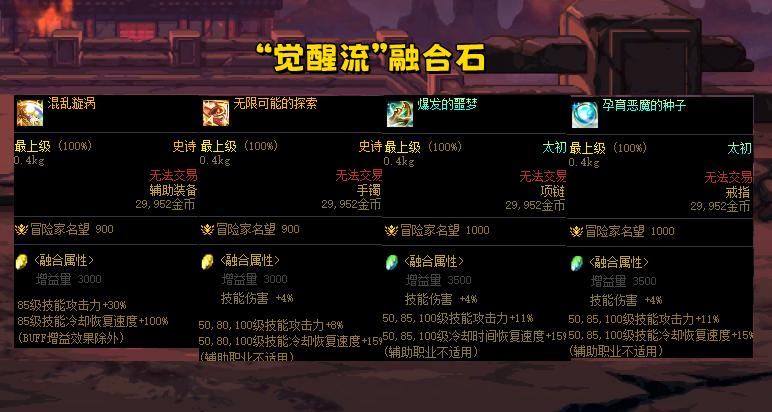 以及一大批的覺醒融合石,“混輪漩渦”增加二覺傷害和冷卻速度;“無限可能的探索”增加覺醒技攻和冷卻速度;