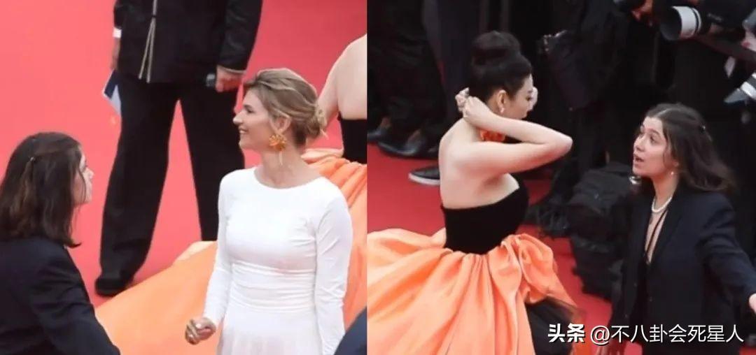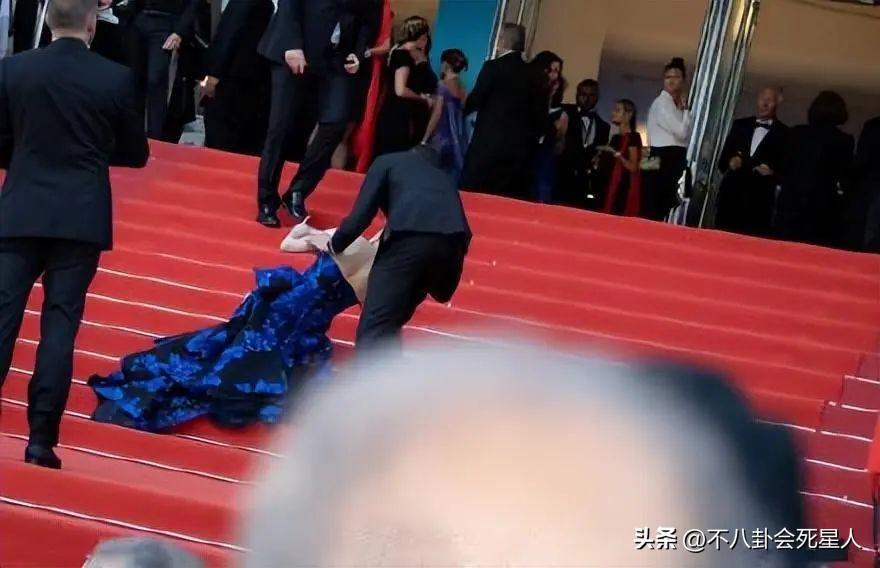 還有女星梁鏡柯,穿着優雅的她在紅毯也摔倒了,更加尷尬的是她放在包裏的“吸奶器”也被摔出來了,成爲了戛納紅毯上一大看點。