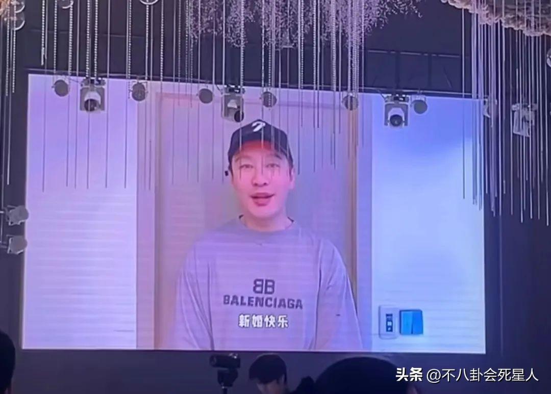 黃曉明雖然未能來到現場,卻隔空錄製了一段視頻,祝福新人新婚快樂,早生貴子。