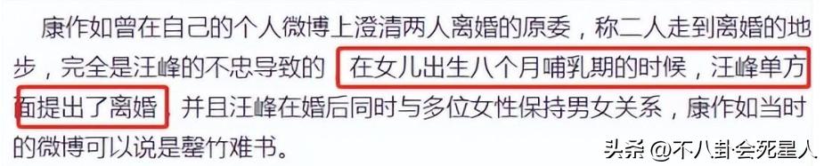巧合的是,汪峯的其中一任前妻唐作如也曾爆料,汪峯在自己哺乳期8個月的時候出軌,和多名女性保持男女關係。