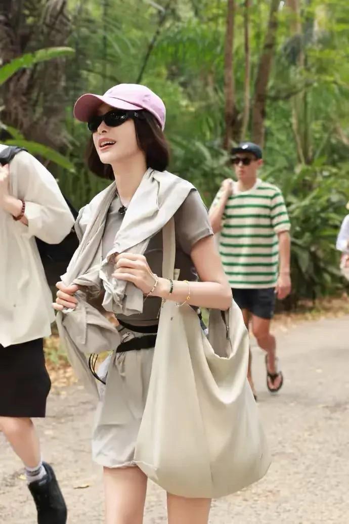 秦嵐這一套穿搭是屬於休閒風,所以在挑選配飾的時候,她沒有刻意佩戴珠寶首飾,或者是一些很浮誇的類型,而是選擇了風格比較統一的棒球帽、腰包。