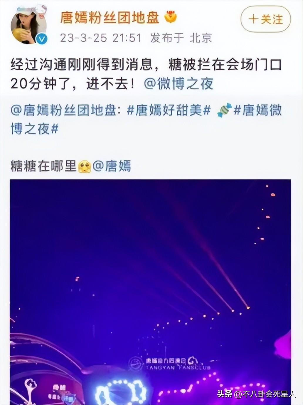 舉個例子來講,在某次的微博之夜上,唐嫣穿着華麗的禮服,本想在晚會上大放異彩,驚豔全場,結果因爲遲到被保安攔在外面,溝通了20分鐘,協調無果進不去,那時受到了許多人的嘲諷。